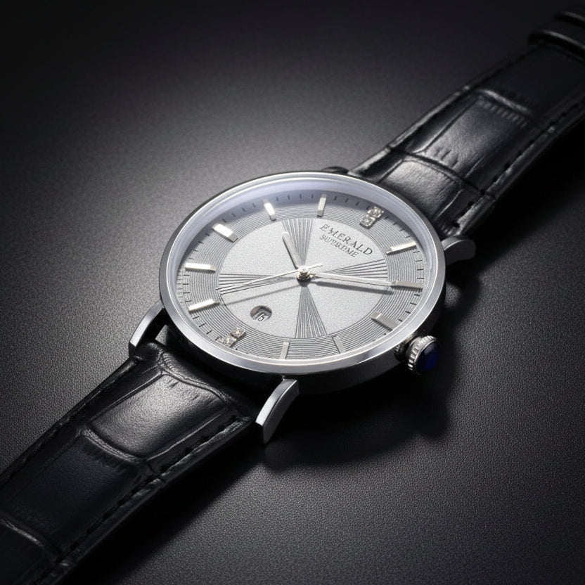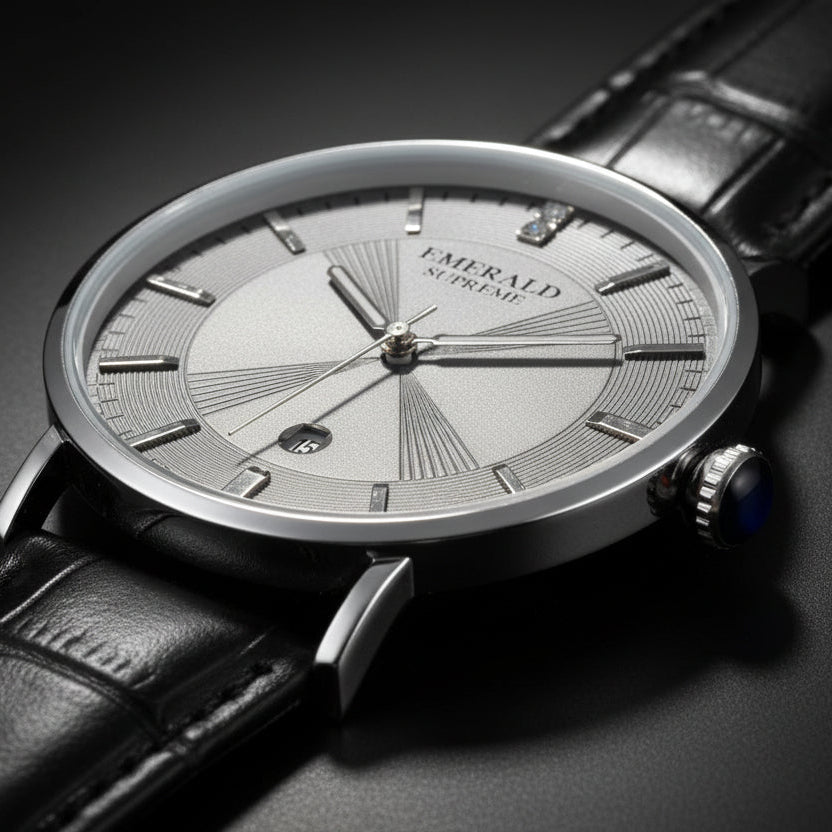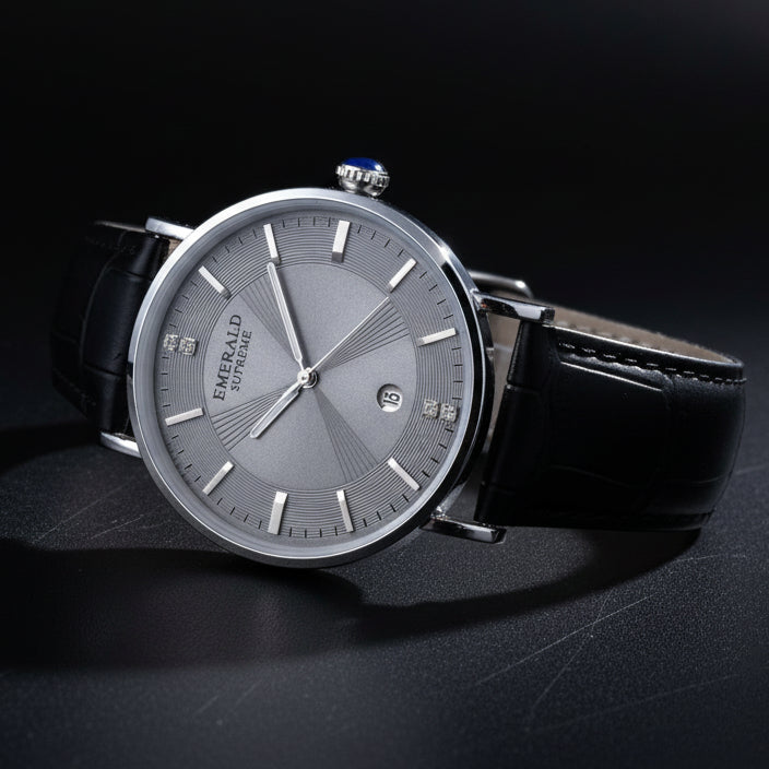Timeless elegance meets precision — the Emerald Graphite-watch features a sleek Round case, Index dial, and classic leather strap. Powered by a reliable quartz Japan movement, it embodies luxury, heritage, and sophistication for the modern gentleman.