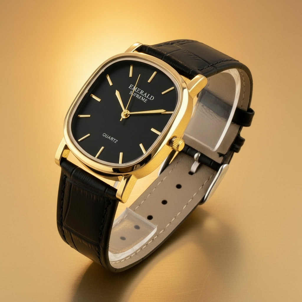 Timeless elegance meets precision — the Emerald Ellipse-watch features a sleek Ellipse case, index dial, and classic leather strap. Powered by a reliable quartz movement, it embodies luxury, heritage, and sophistication for the modern gentleman.
