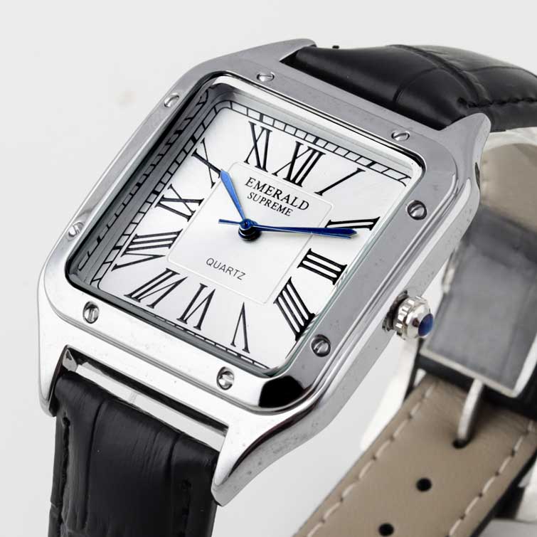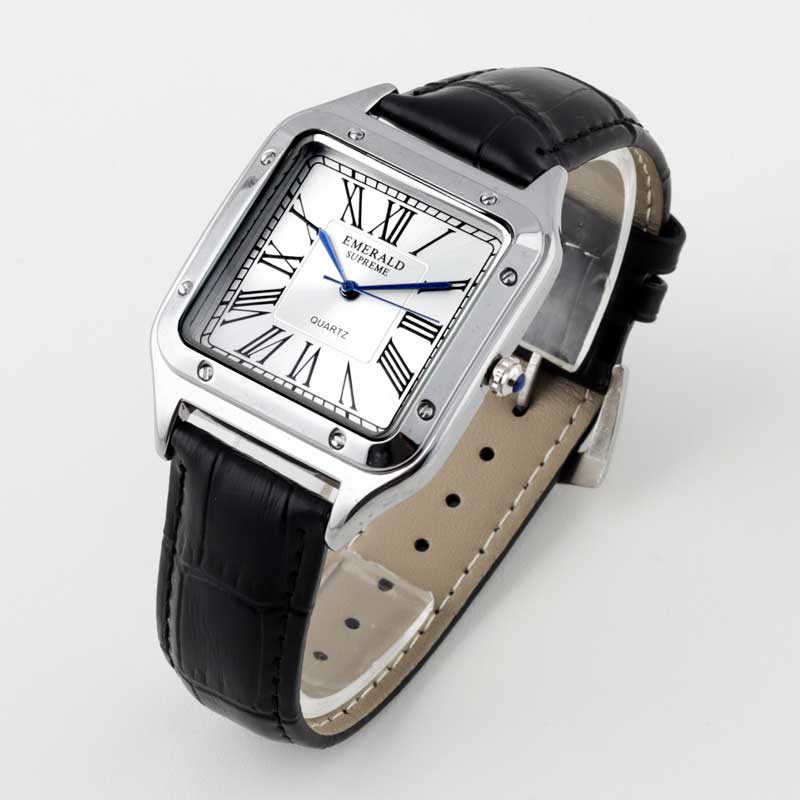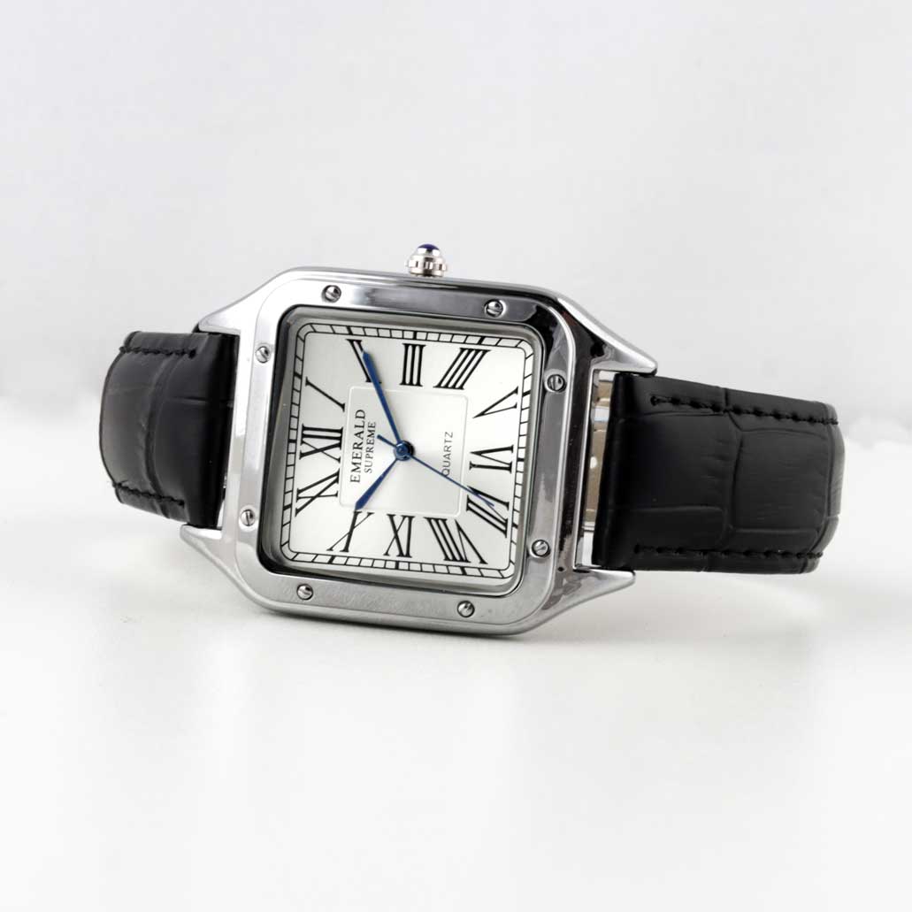 Timeless elegance meets precision — the Emerald Santos-Dumont watch features a sleek square case, Roman numeral dial, and classic leather strap. Powered by a reliable quartz movement, it embodies luxury, heritage, and sophistication for the modern gentleman.