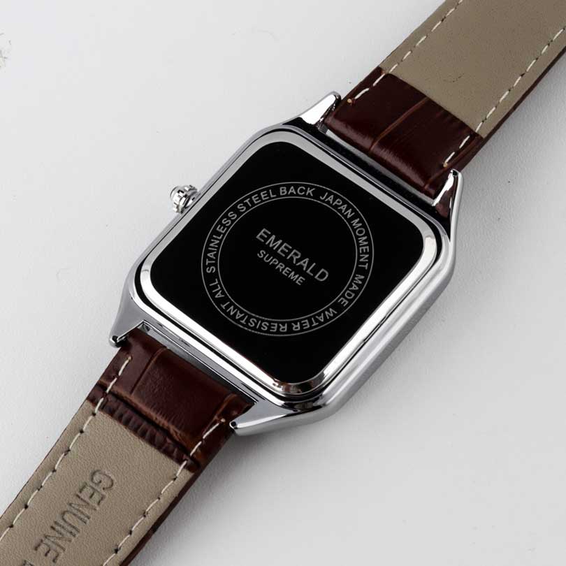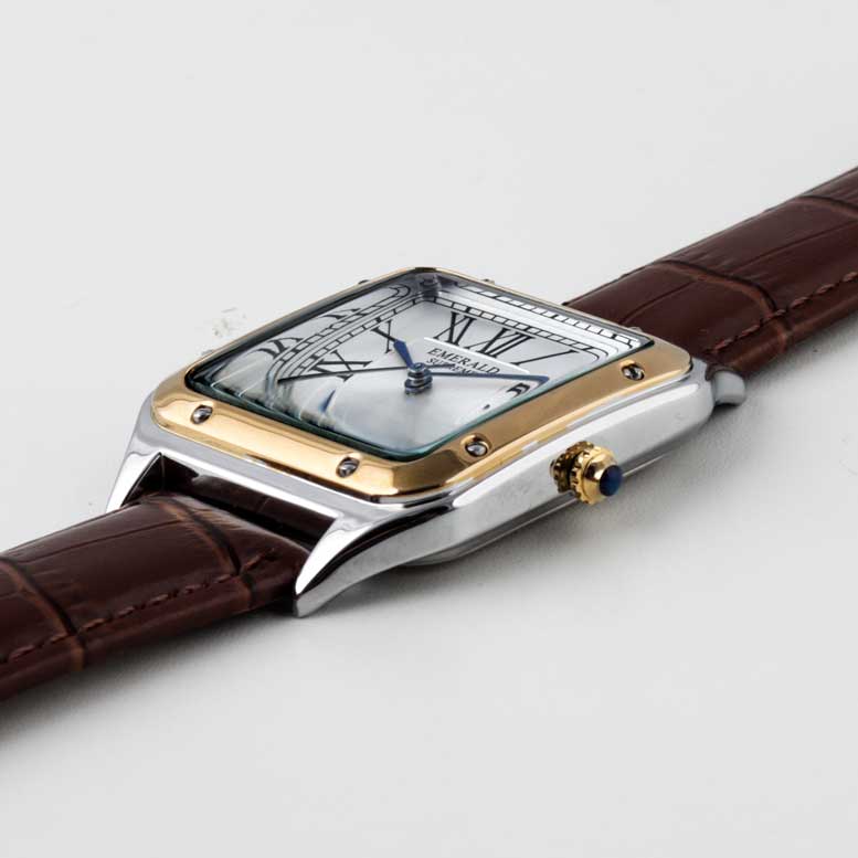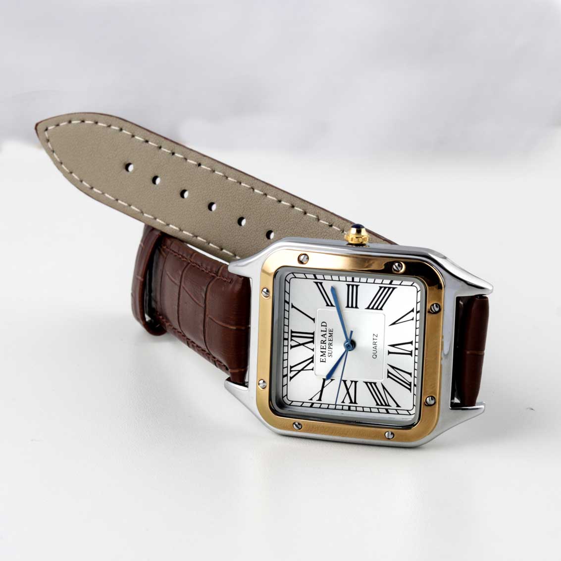 Timeless elegance meets precision — the Emerald Santos-Dumont watch features a sleek square case, Roman numeral dial, and classic leather strap. Powered by a reliable quartz movement, it embodies luxury, heritage, and sophistication for the modern gentleman.